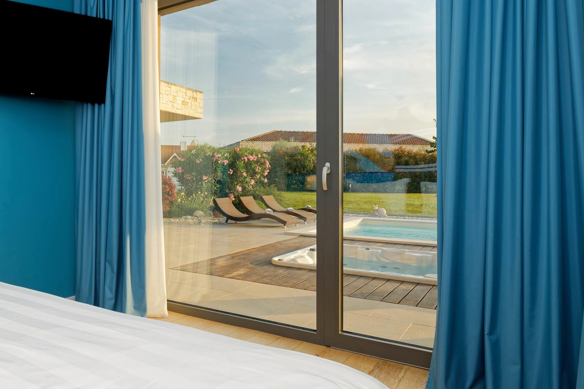 Villa Sanpadeo is situated in the serene and picturesque area of Vrh Macari, near Brtonigla in the heart of Istria. This beautiful region, known for its rolling hills, lush olive groves, and expansive vineyards, offers an authentic Croatian countryside experience. The area is perfect for those seeking peace and tranquility while still being close to charming towns like Brtonigla (only 1,5km away), which is rich in history and culture. Visitors can explore the town’s traditional Istrian architecture, local churches, and enjoy authentic Mediterranean cuisine in nearby restaurants.
