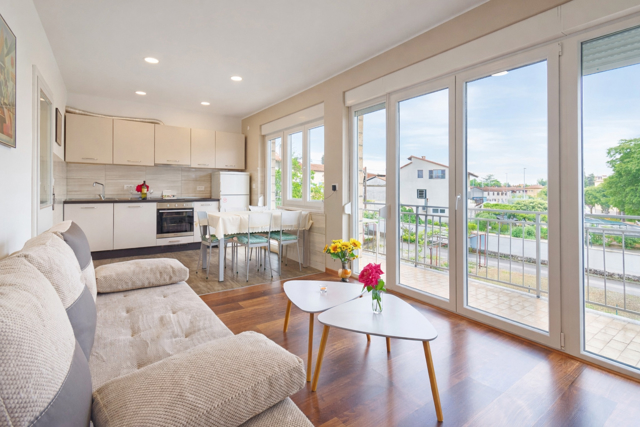 Die Wohnung befindet sich in einem Wohngebiet, nur wenige Gehminuten vom Stadtzentrum entfernt und gleichzeitig nur 2 km vom nächsten Strand. Umag in Istrien ist die erste Stadt, die Sie erreichen, wenn Sie aus Westeuropa nach Istrien kommen.