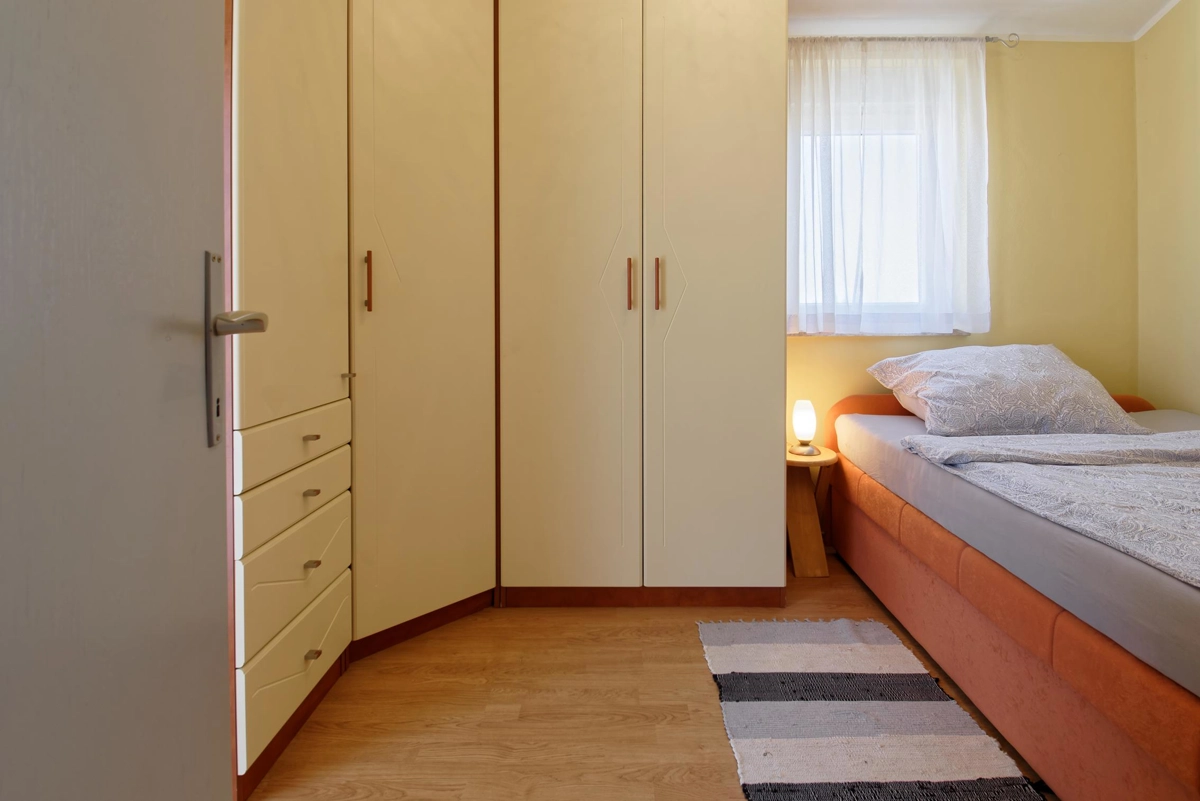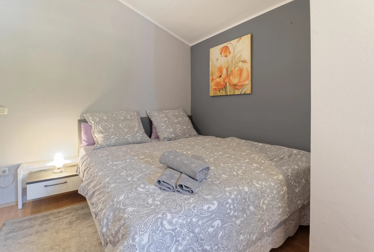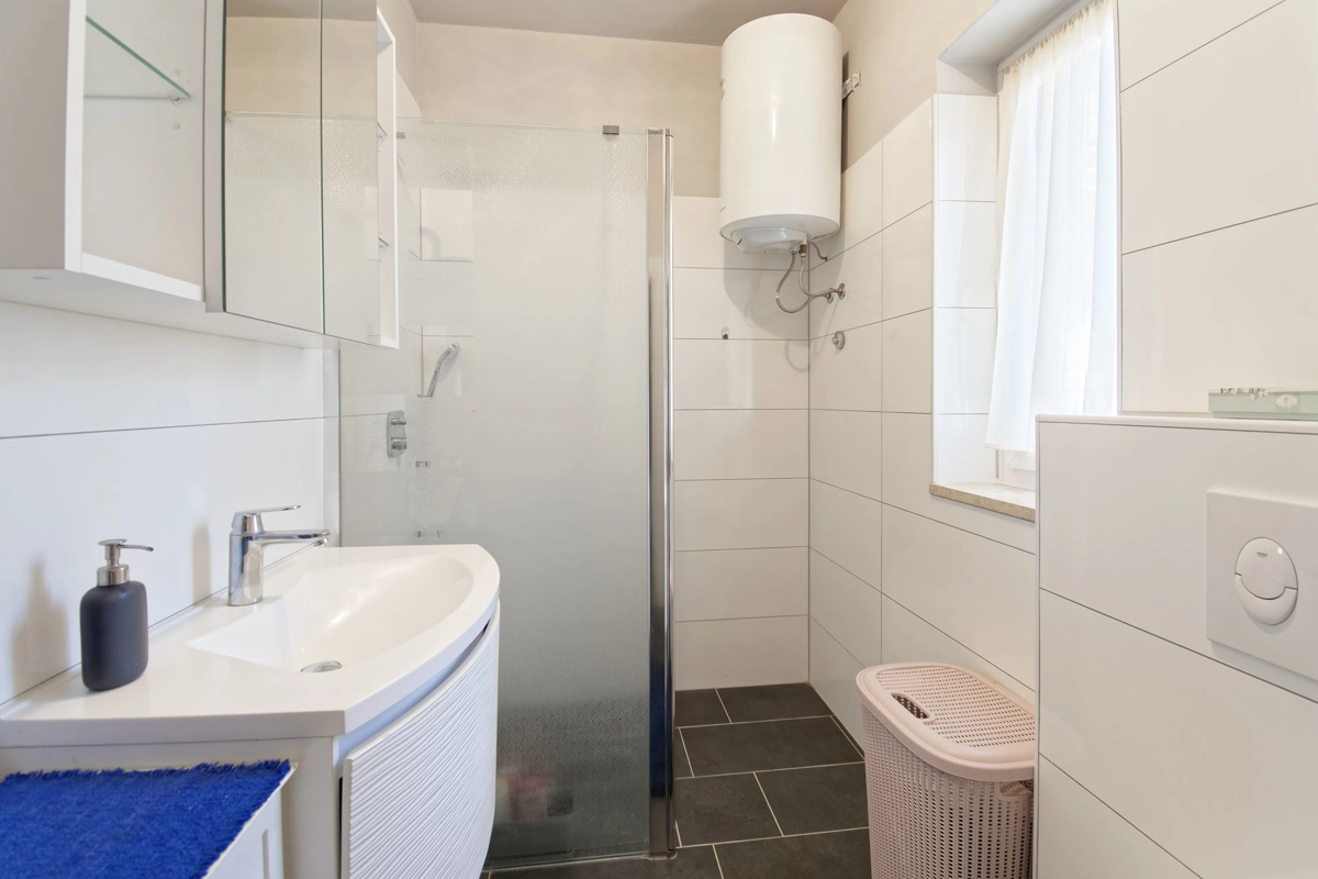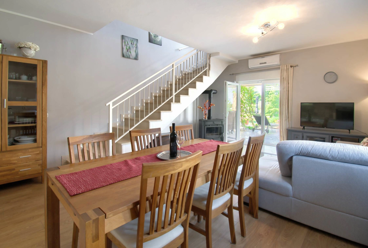 Two-bedroom Apartment Ana is located on the ground and first floors. It has 83 m2 and a terrace and a balcony. It can accommodate up to 4 persons. The ground floor has a living room with satellite TV, a dining room, an equipped kitchen, and a bathroom with a shower and exit to the terrace.