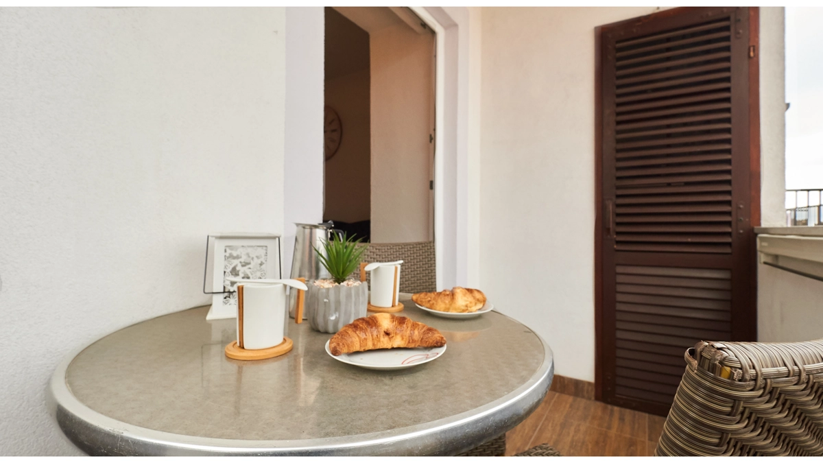 The apartment is located on the 1st floor and has a balcony with a sea view.