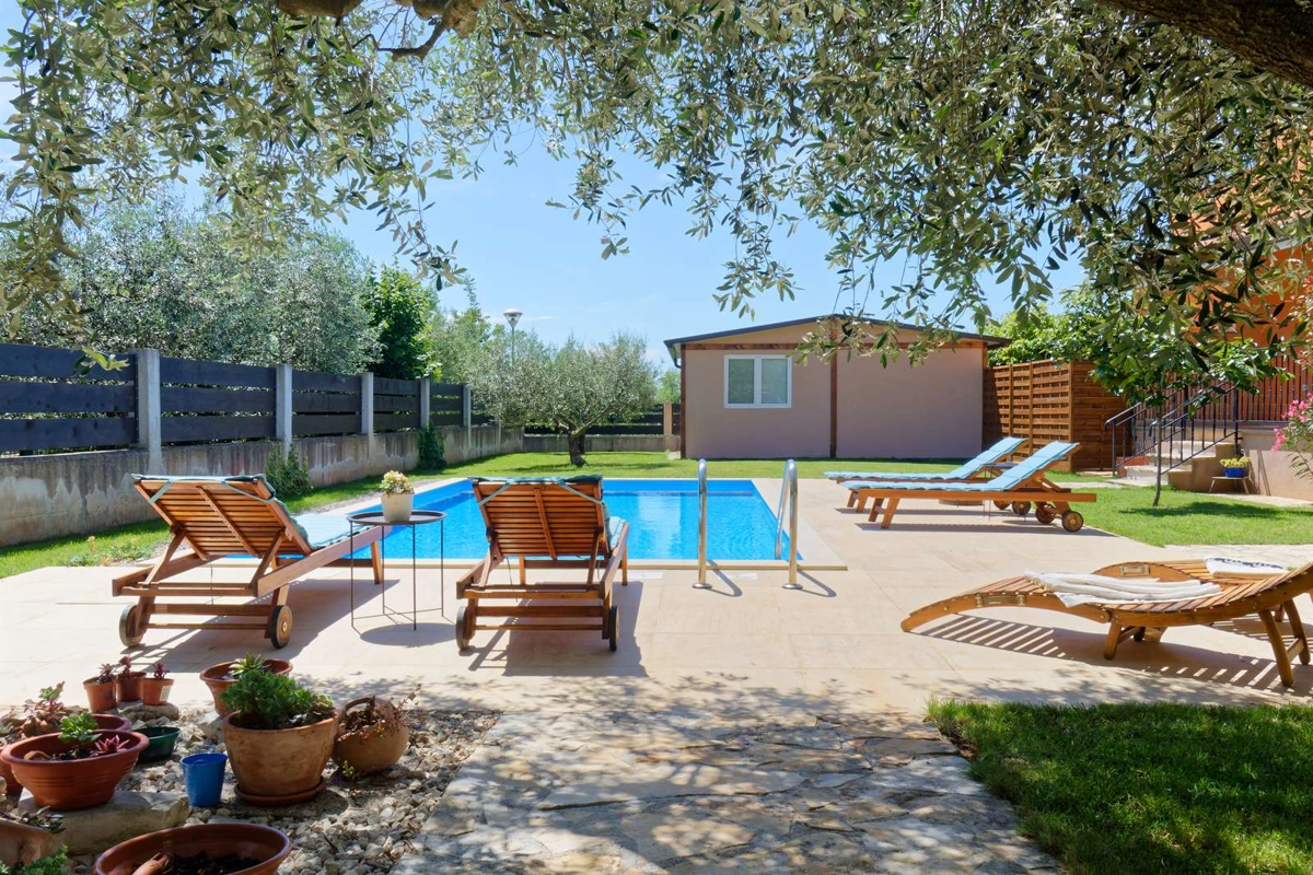 Check-in and key pick-up address is: Srbarica 48i 52470 Umag
