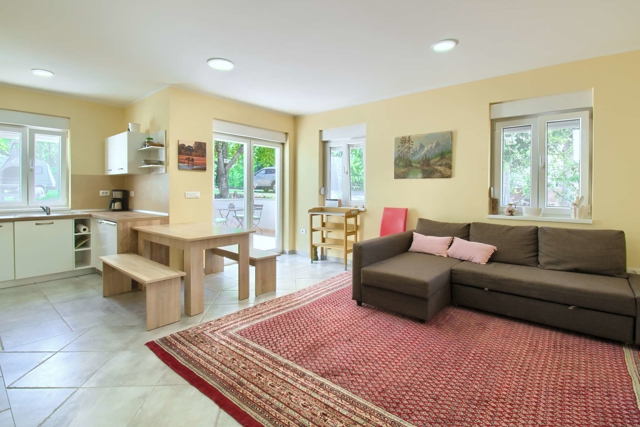 Apartman Sara je dvosobni apartman smješten u prizemlju. S ukupnom površinom od 52 m², apartman ima privatnu terasu i može primiti do 3 gosta.