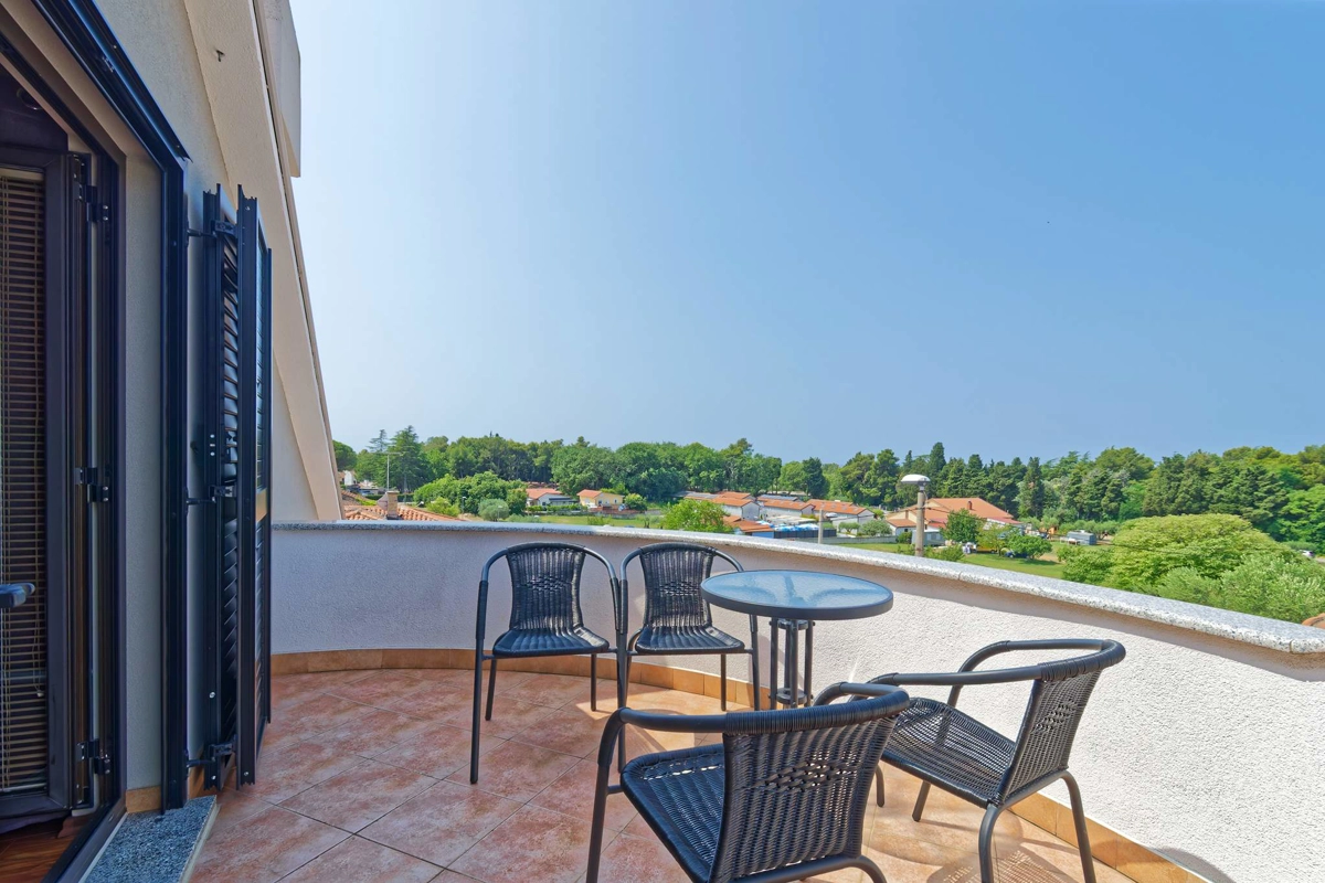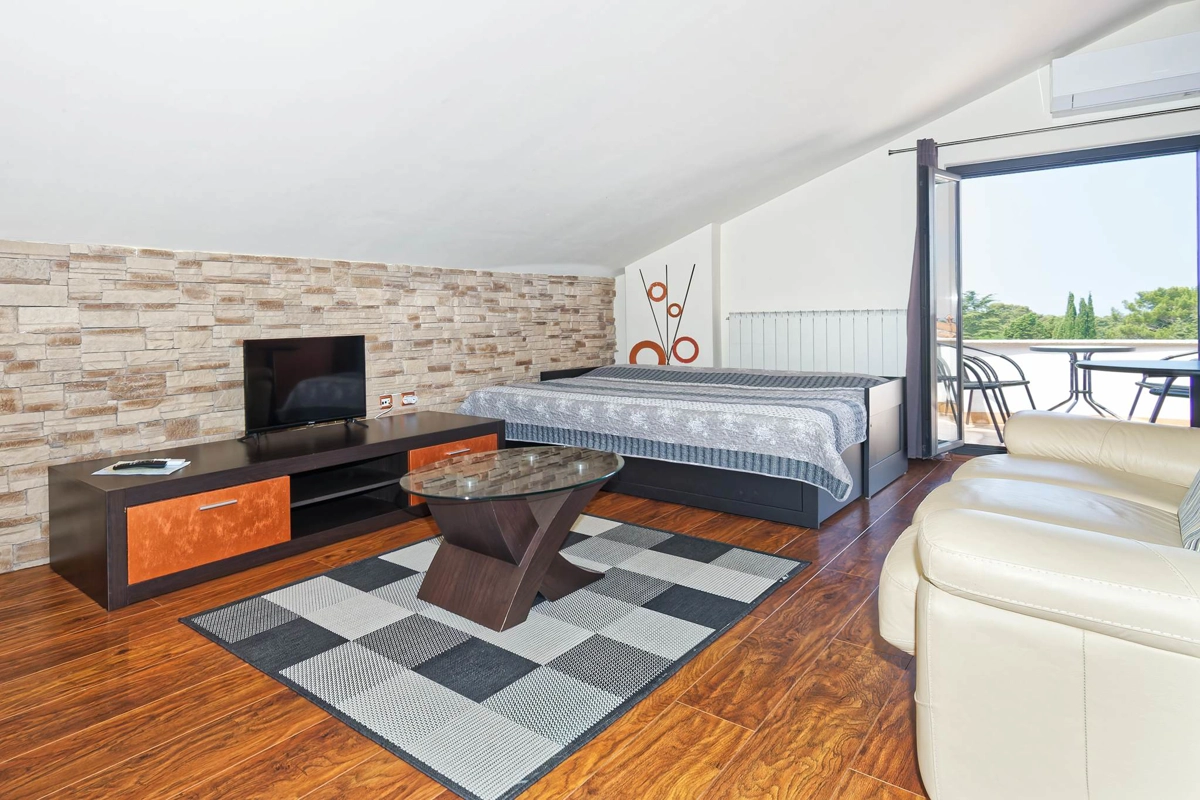 Sastoje se od 3 apartmana: jednokrevetnog, jednokrevetnog s balkonom i dvosobnog s balkonom.