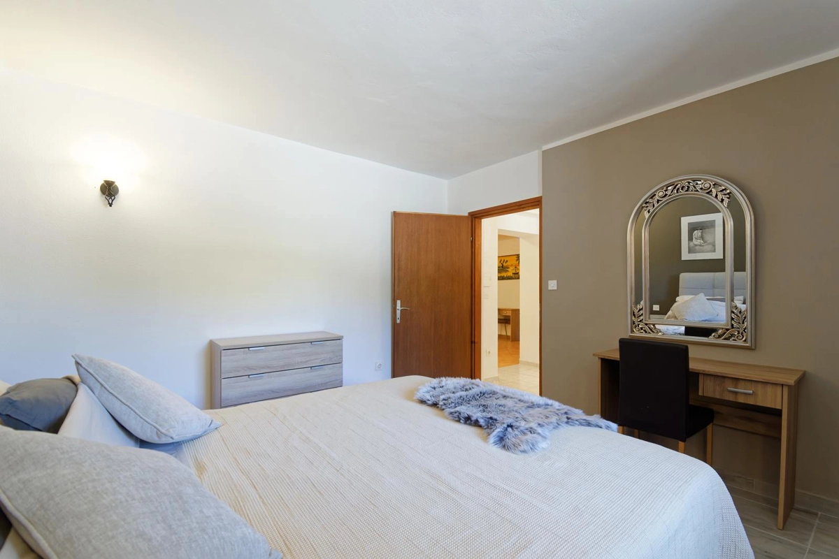 There is a big garden surrounding the house with 2 swimming pools, sun loungers and parasols, ruffed terrace with dining table and chairs and barbecue.