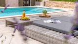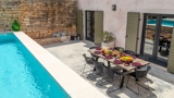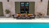 The villa also has an outdoor pool, outdoor dining area with a barbecue and a terrace.