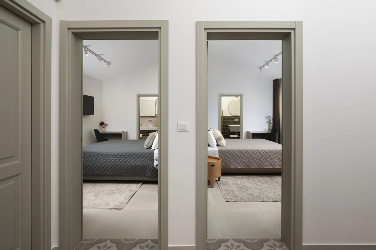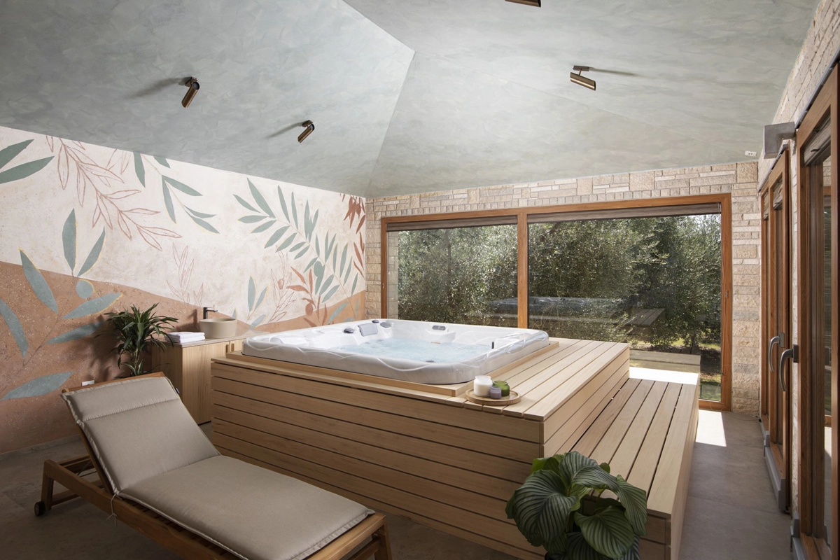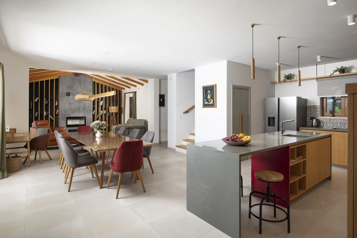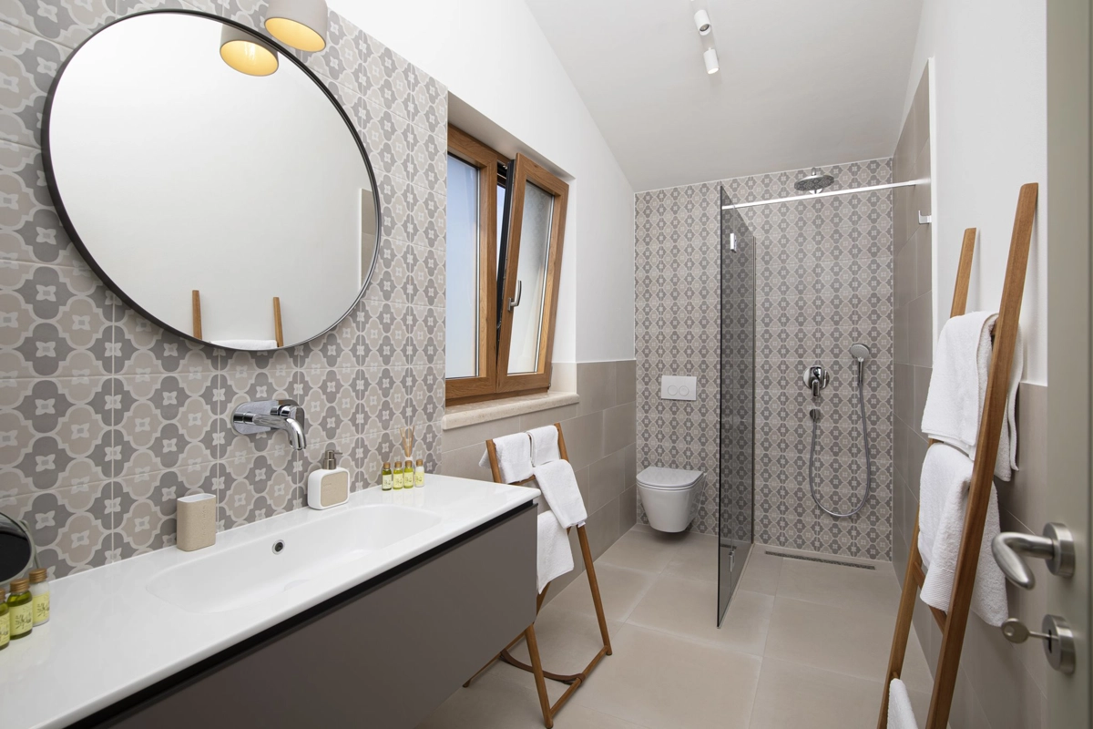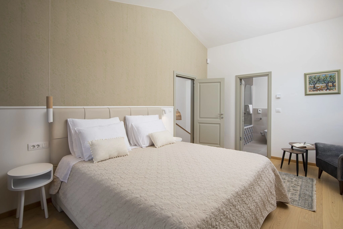 The villa features a stunning swimming pool as well as a small relaxation pool, a spacious terrace, and a lovely garden with olive trees, creating the perfect setting for relaxation. The outdoor area is equipped with a barbecue, a dining area, sun loungers, and an outdoor shower. Inside, the villa has 4 bedrooms, fully equipped kitchen and dining room, living room with a fireplace, 4 bathrooms and a separate toilet.