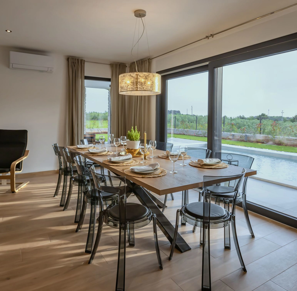 Guests have at their disposal a living room, kitchen, and dining room connected in an open space, 3 air-conditioned bedrooms, 3 bathrooms, and a terrace.