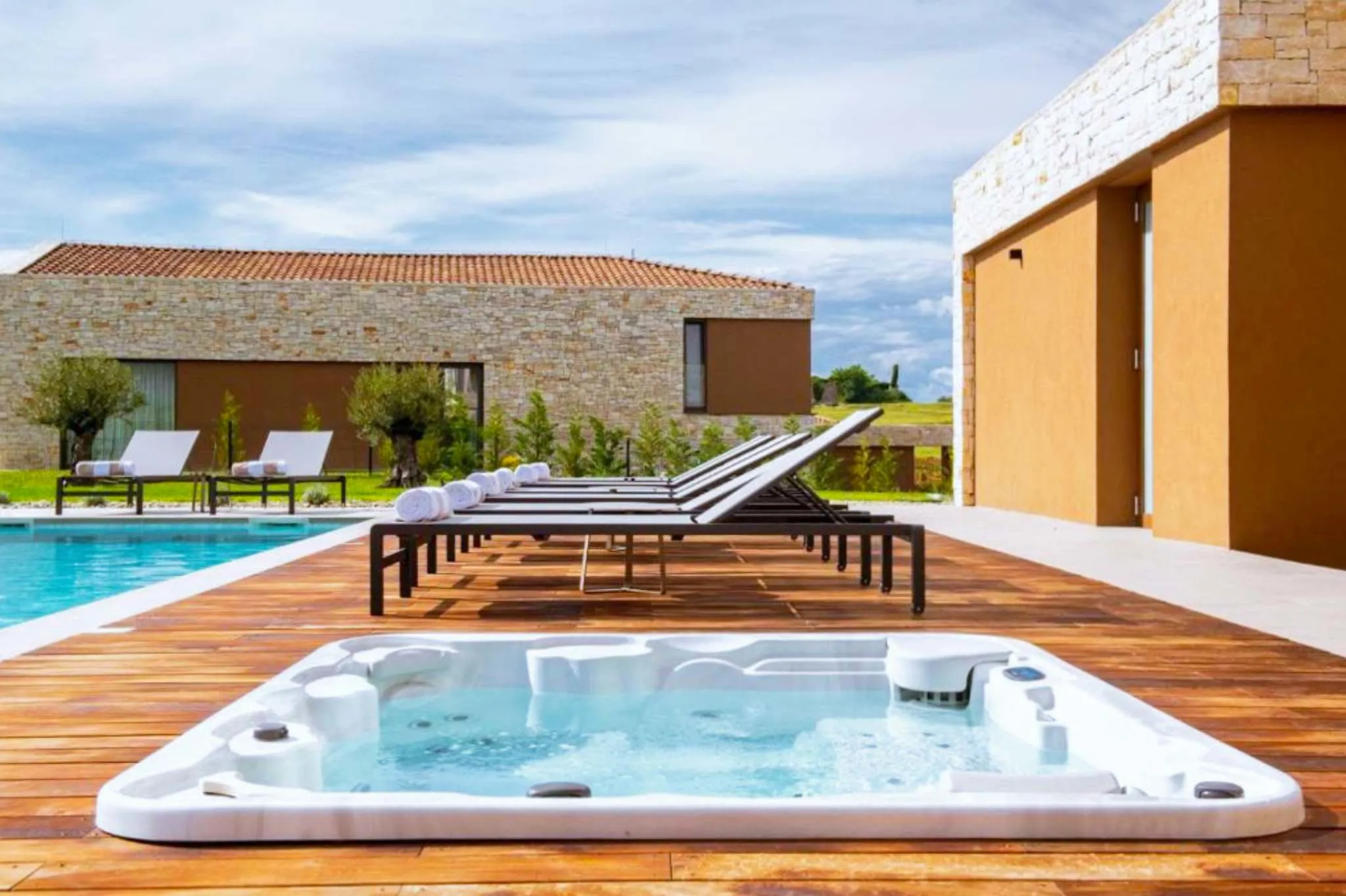 Villa Sanpadeo is situated in the serene and picturesque area of Vrh Macari, near Brtonigla in the heart of Istria. This beautiful region, known for its rolling hills, lush olive groves, and expansive vineyards, offers an authentic Croatian countryside experience. The area is perfect for those seeking peace and tranquility while still being close to charming towns like Brtonigla (only 1,5km away), which is rich in history and culture. Visitors can explore the town’s traditional Istrian architecture, local churches, and enjoy authentic Mediterranean cuisine in nearby restaurants.
