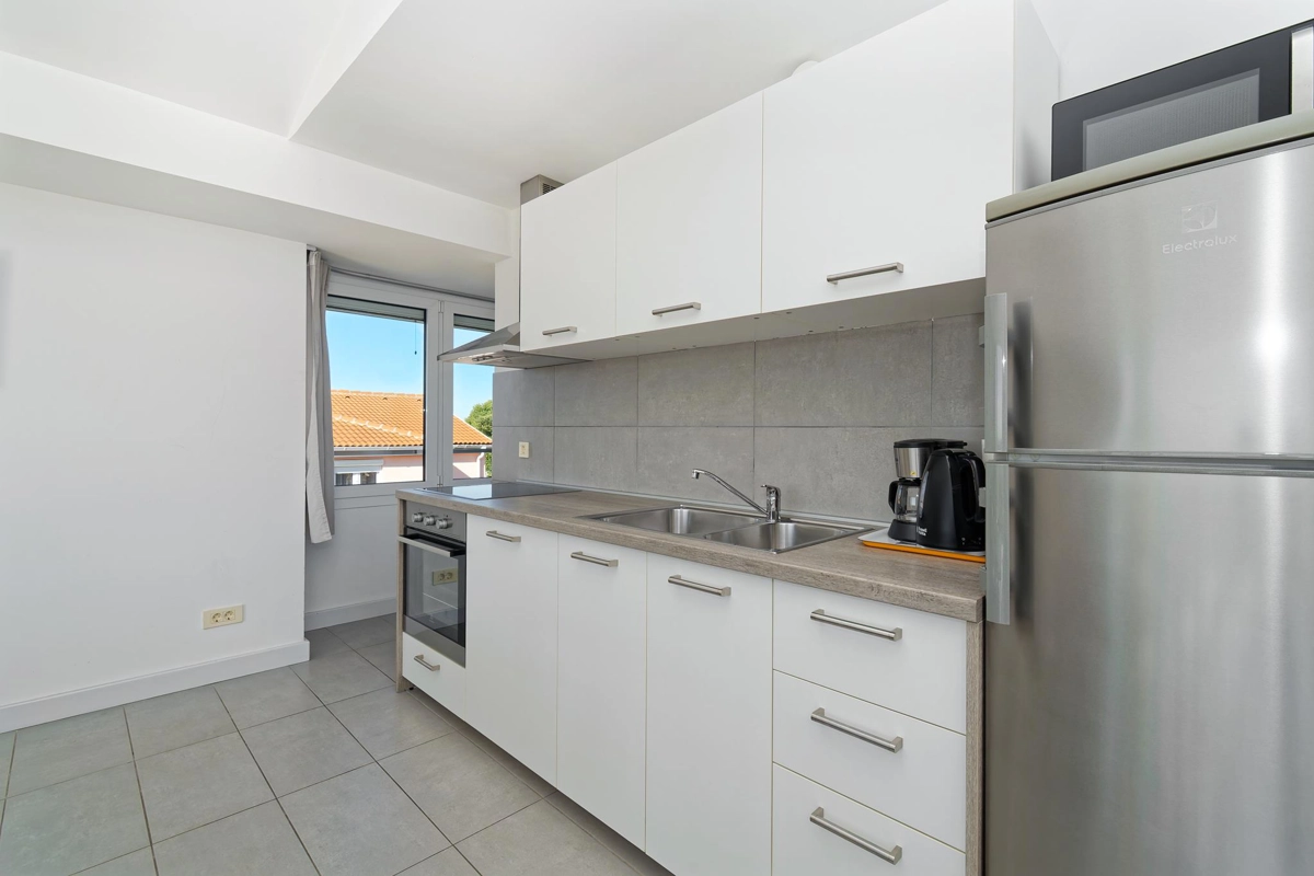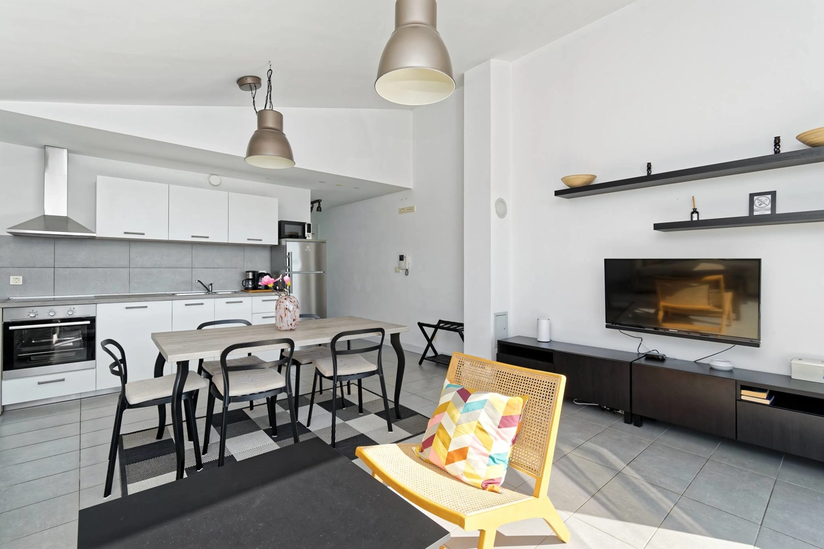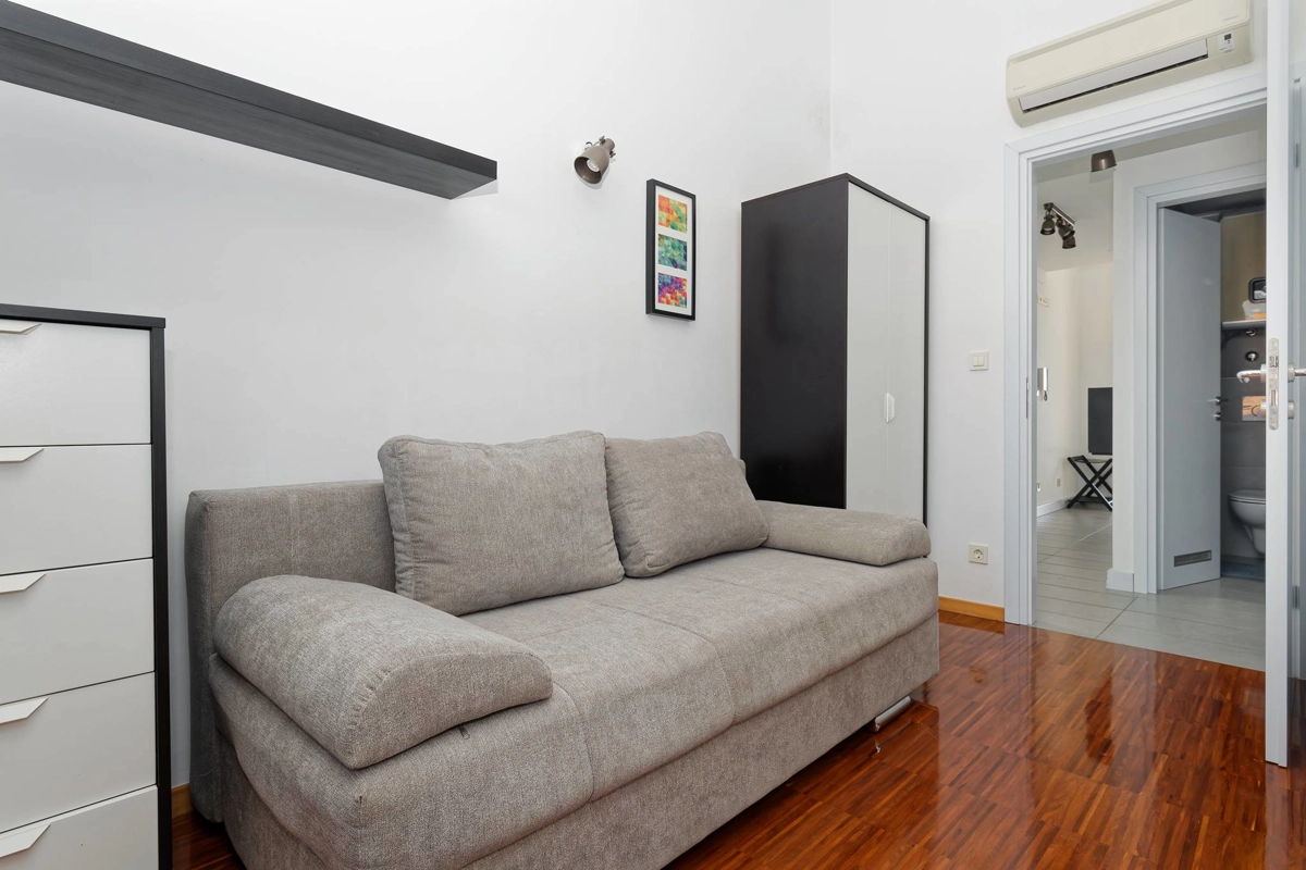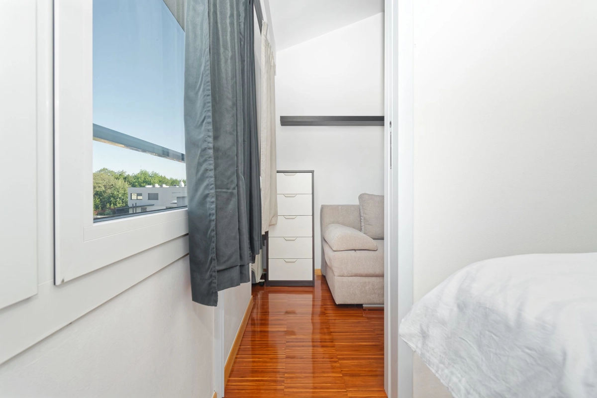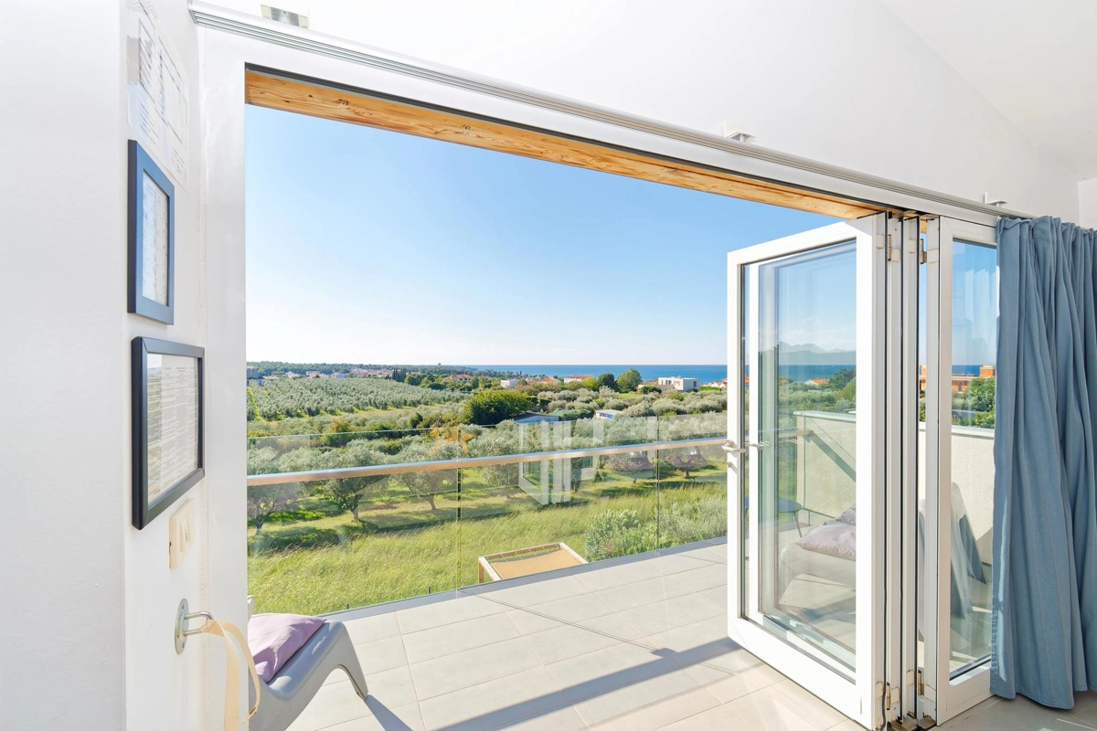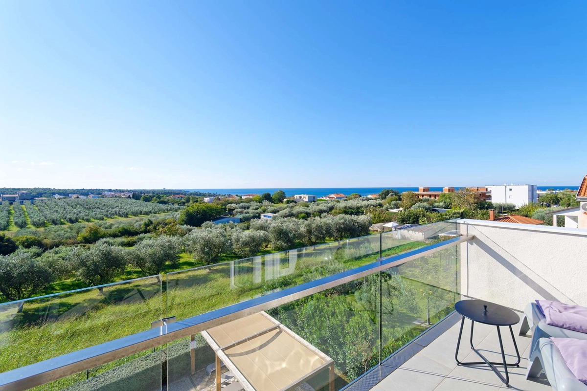Apartment La Vista is located in Zambratija, only 1km from the sea. The size of the apartment is 60 m² and is located on the second floor of a residential building. The apartment consists of 2 bedrooms, a bathroom, a separate toilet, an equipped kitchen, a dining area, a living room with a sofa bed, and a balcony. Outside guests have a shared swimming pool with sun loungers at their disposal, with an outdoor shower. The apartment can accommodate up to 4 people. Guests have free private parking for 1 car at their disposal.