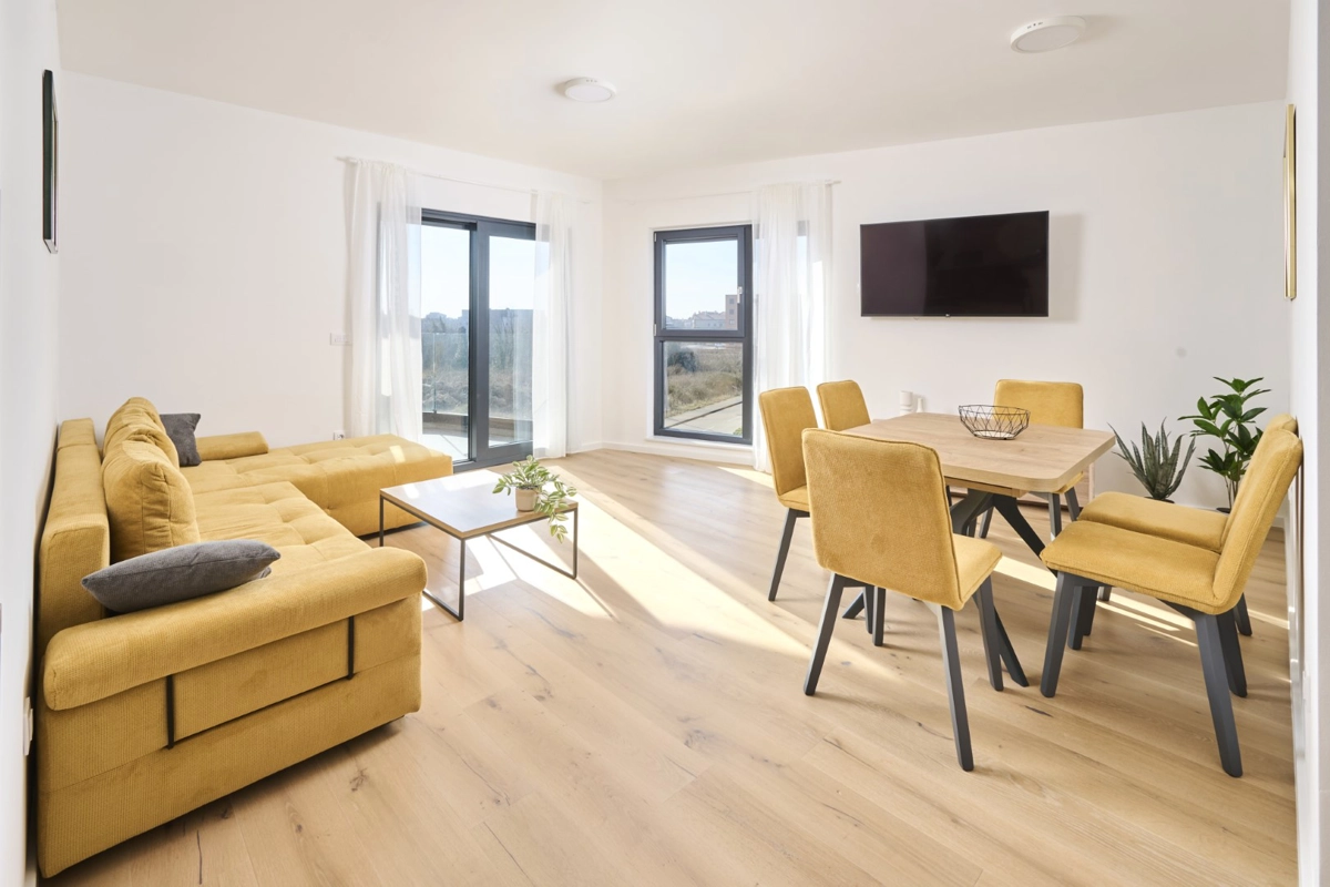 Guests have at their disposal a living room, kitchen, 2 bedrooms, bathroom, and balcony, for a total of 6 people.