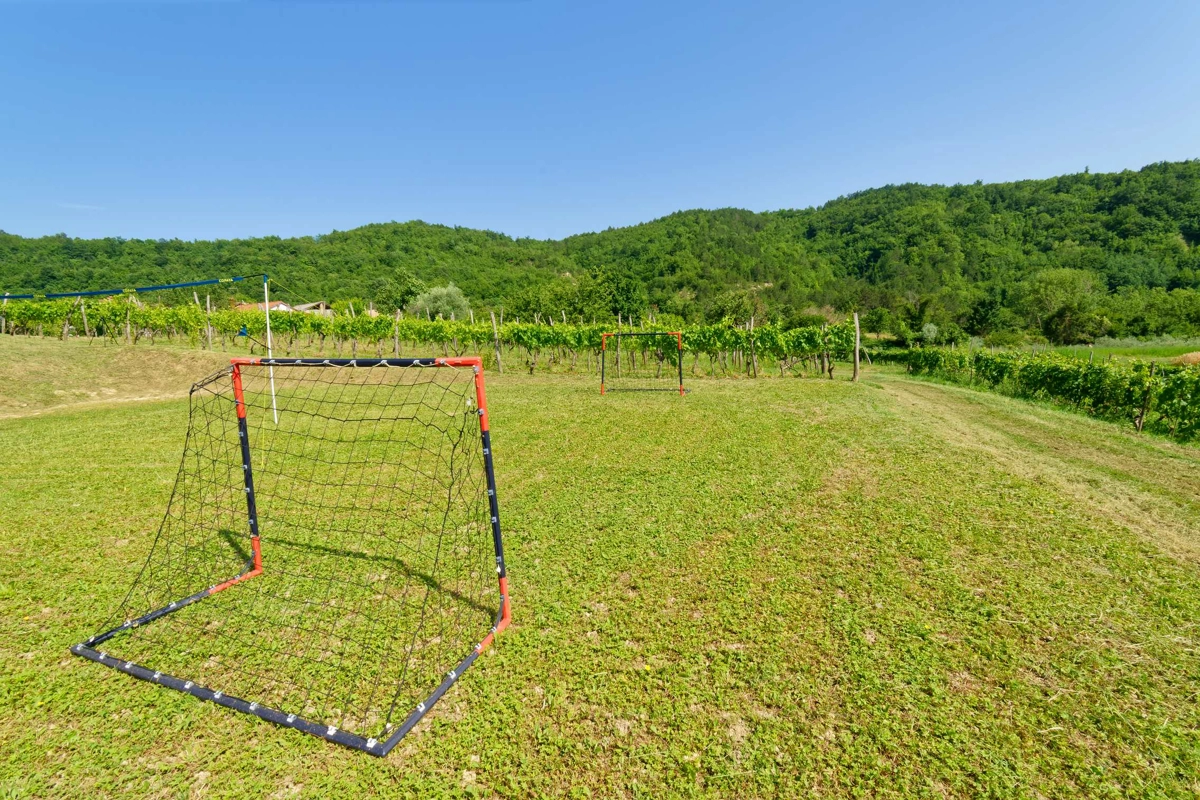 A children's playground with sports equipment is available in the garden.