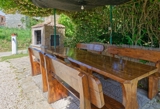 The villa also has an outdoor pool, outdoor dining area with a barbecue and a terrace.