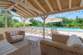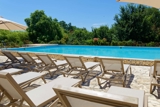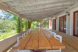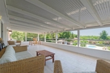 There is a big garden surrounding the house with 2 swimming pools, sun loungers and parasols, ruffed terrace with dining table and chairs and barbecue.