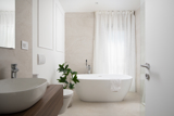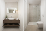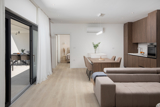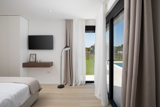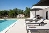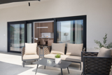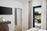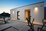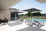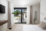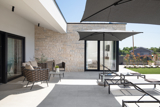 It features two spacious bedrooms, each with its own en-suite bathroom one with a shower, and the other with both a shower and a bathtub. The interior includes a comfortable living room, a fully equipped kitchen with a dining area, and an additional guest toilet. The villa can accommodate up to four guests, making it ideal for families or small groups. Outdoors, guests can enjoy a heated private pool, a sun-soaked terrace with loungers and umbrellas, and an dining area complete with a barbecue. Private parking is also available for added convenience.