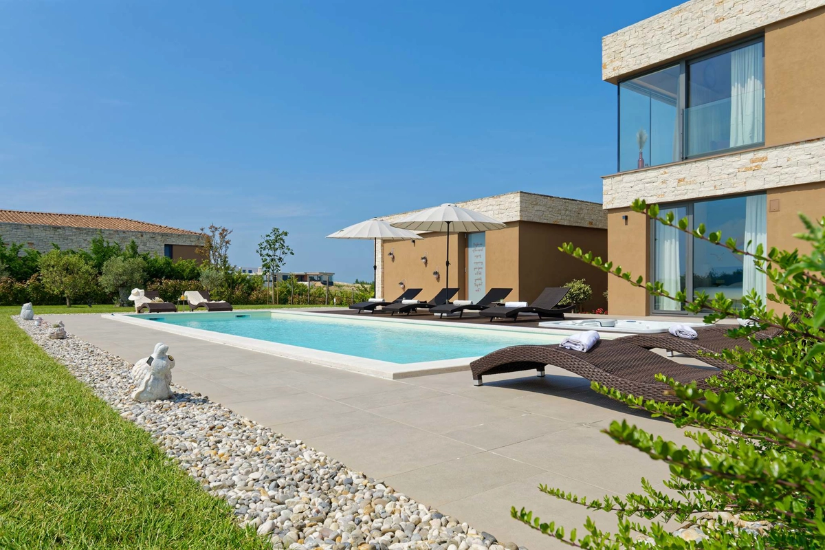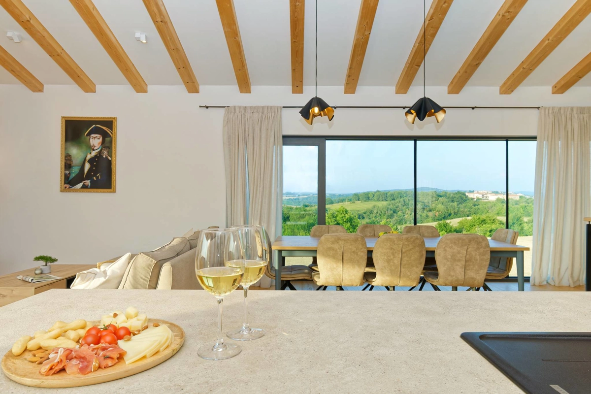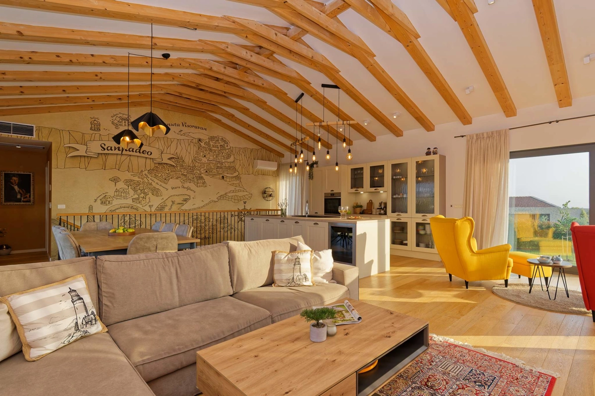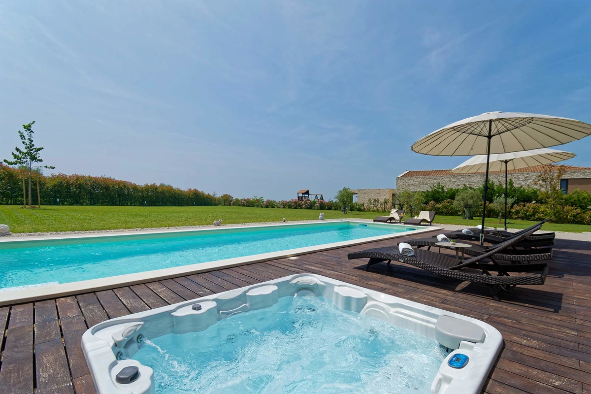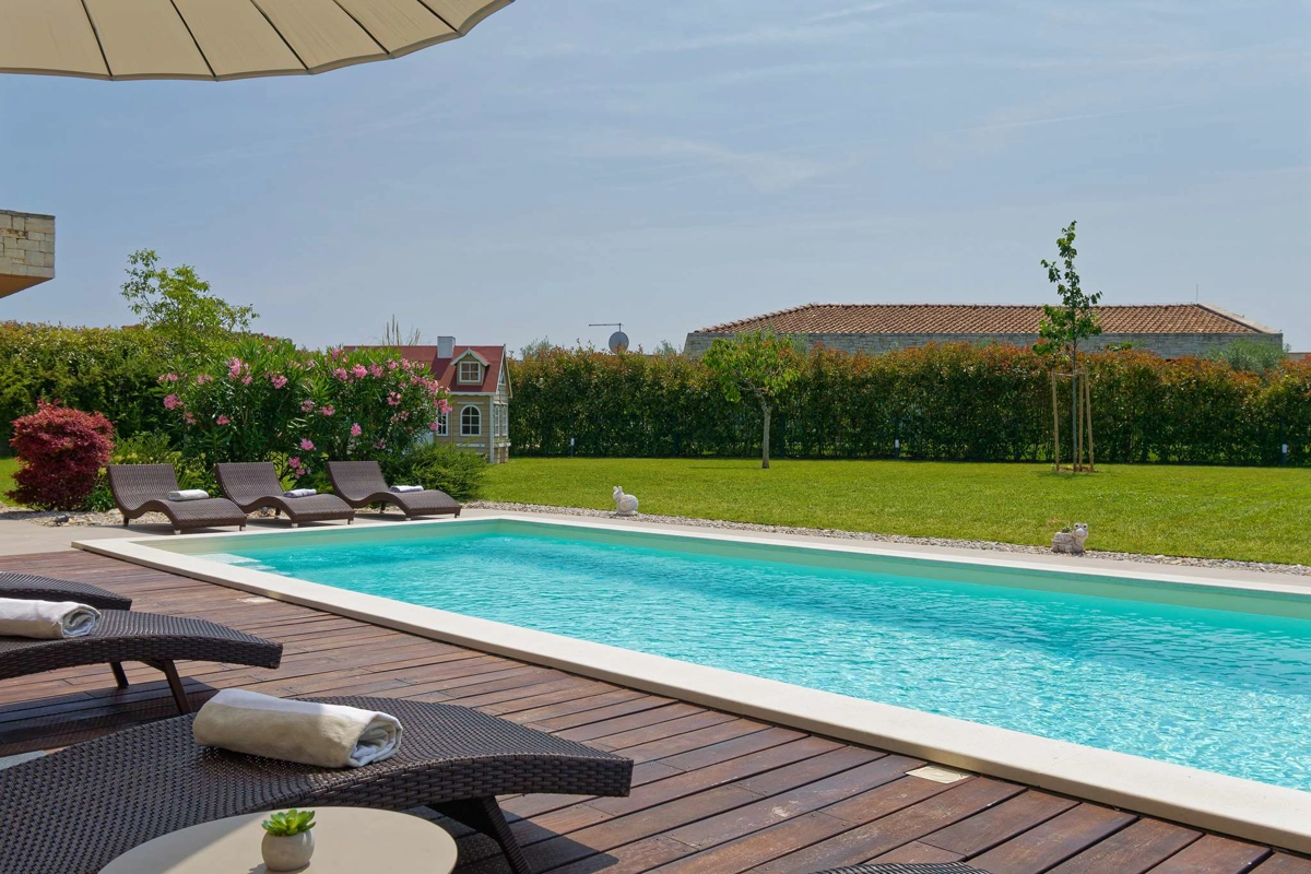 Villa Sanpadeo is situated in the serene and picturesque area of Vrh Macari, near Brtonigla in the heart of Istria. This beautiful region, known for its rolling hills, lush olive groves, and expansive vineyards, offers an authentic Croatian countryside experience. The area is perfect for those seeking peace and tranquility while still being close to charming towns like Brtonigla (only 1,5km away), which is rich in history and culture. Visitors can explore the town’s traditional Istrian architecture, local churches, and enjoy authentic Mediterranean cuisine in nearby restaurants.