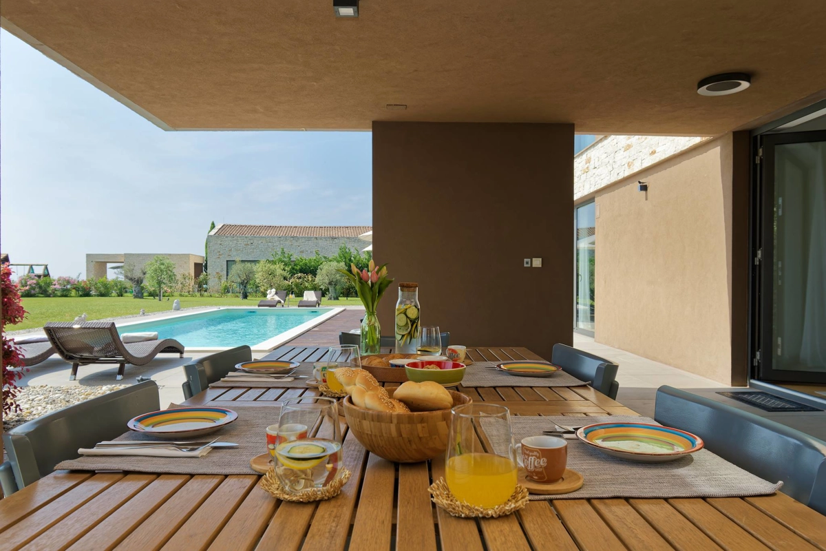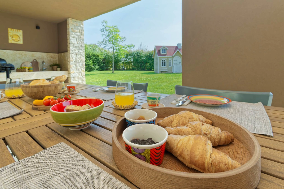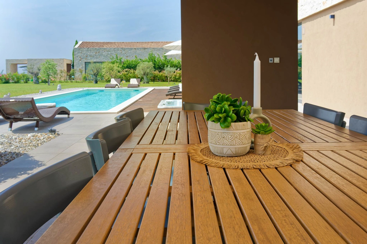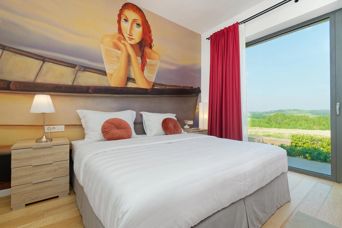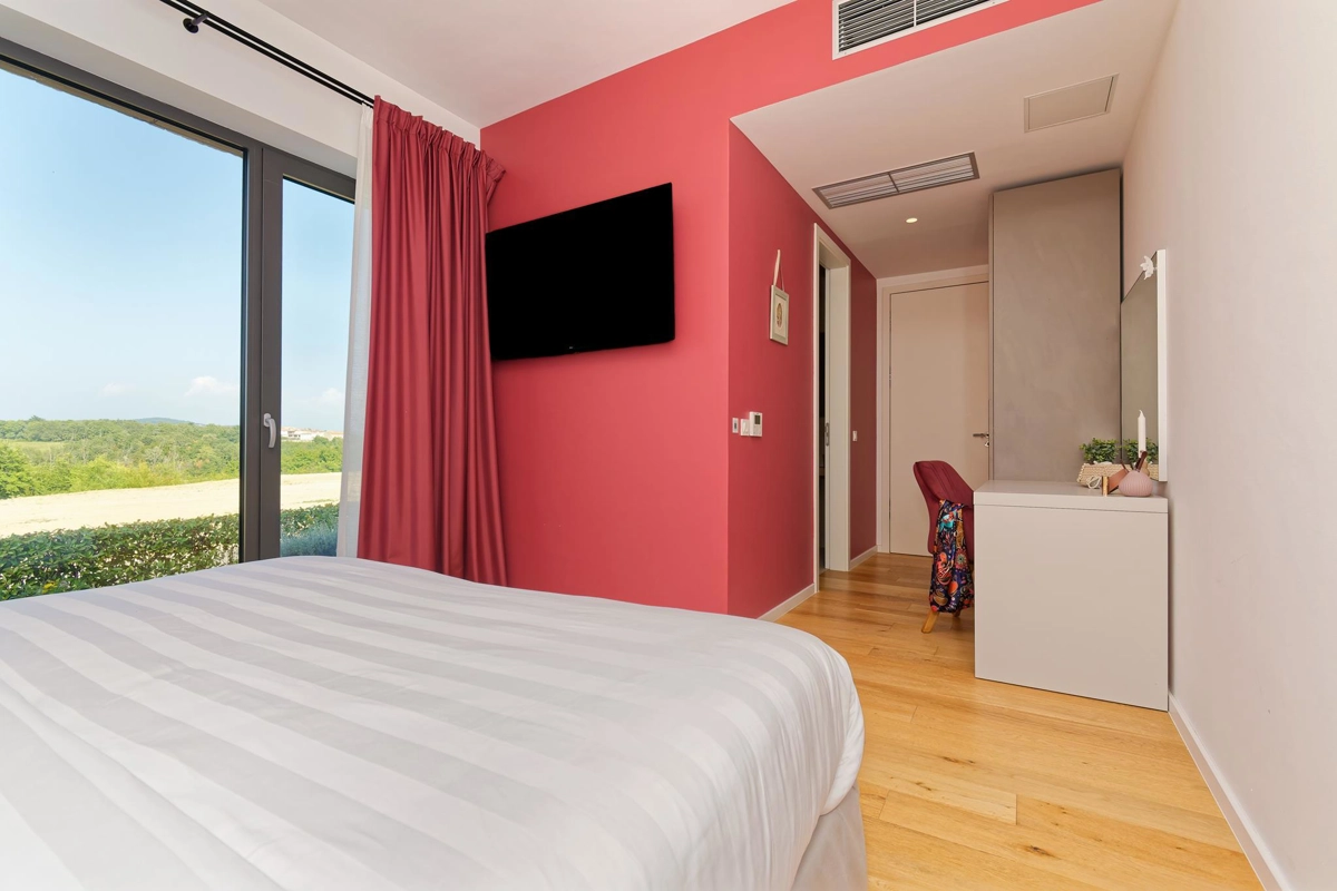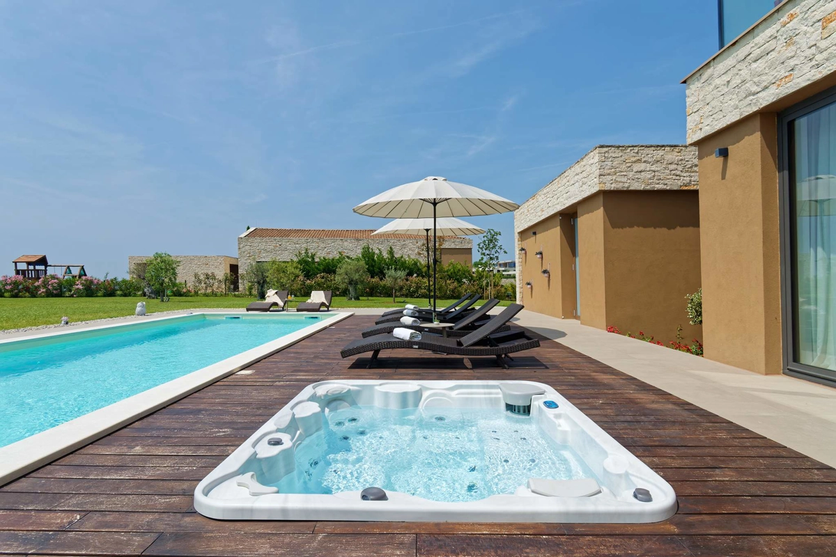 Villa Sanpadeo is situated in the serene and picturesque area of Vrh Macari, near Brtonigla in the heart of Istria. This beautiful region, known for its rolling hills, lush olive groves, and expansive vineyards, offers an authentic Croatian countryside experience. The area is perfect for those seeking peace and tranquility while still being close to charming towns like Brtonigla (only 1,5km away), which is rich in history and culture. Visitors can explore the town’s traditional Istrian architecture, local churches, and enjoy authentic Mediterranean cuisine in nearby restaurants.